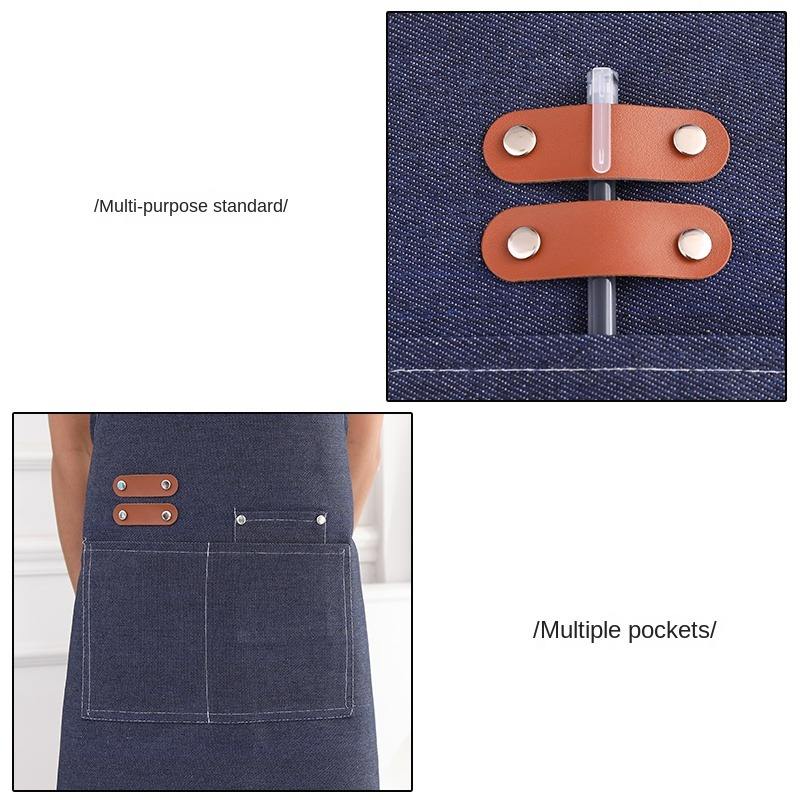 ผ้ากันเปื้อนเดนิมคุณภาพสูงสำหรับผู้ใหญ่ ขายส่ง พร้อมโลโก้สั่งทำ สำหรับทำความสะอาด ใช้ในชีวิตประจำวัน ผ้ากันเปื้อนช่างทำผมแบบไม่มีแขน