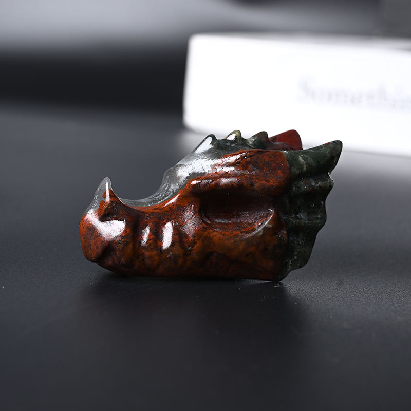 ขายส่งหัวกะโหลกมังกรแอฟริกันบลัดสโตนคุณภาพสูงแกะสลักขนาด 5 ซม. ของตกแต่งบ้านและสำนักงานที่ไม่เหมือนใคร แบรนด์คริสตัลโฮล่า แฟชั่น