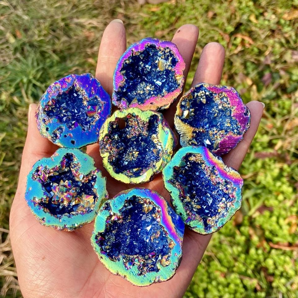 ขายส่งคริสตัลเจโอดสีรุ้งน้ำเงิน-ม่วงแกะสลักคุณภาพสูง ของตกแต่งทันสมัย ของมงคลเพื่อสุขภาพ ของขวัญวันดินโลกสุดพิเศษ
