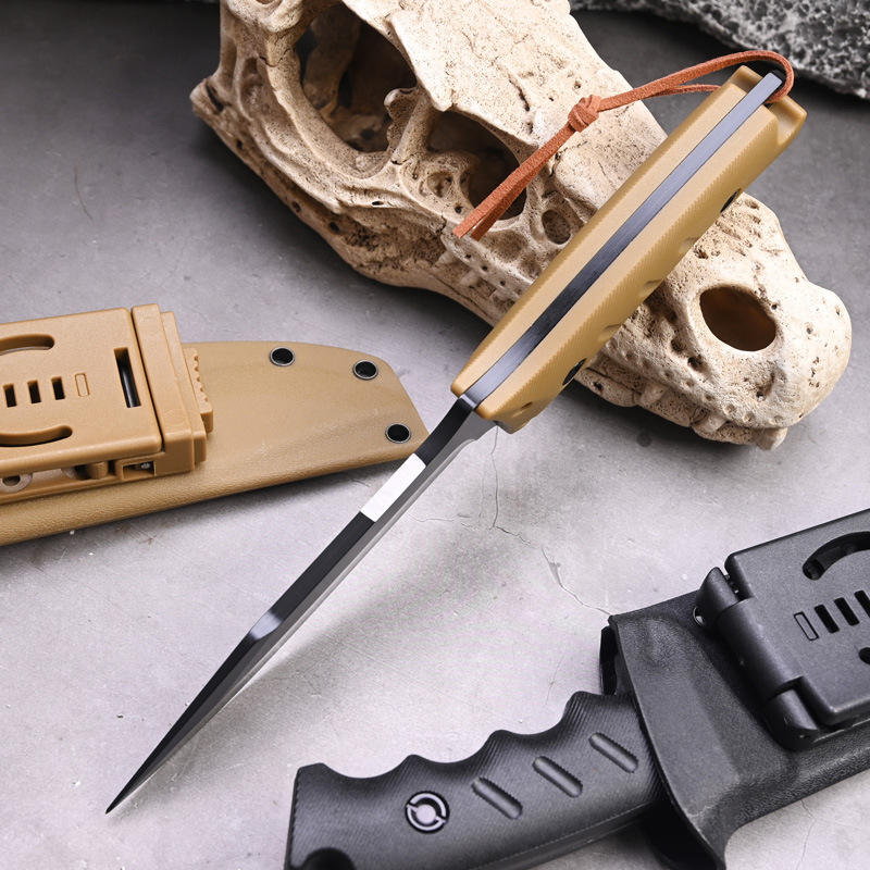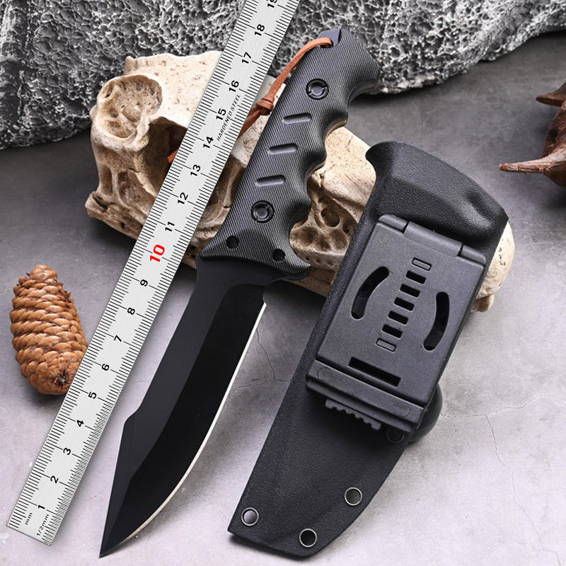 มีดพับคุณภาพสูงแบบคลาสสิกสำหรับการล่าสัตว์และเอาชีวิตรอดกลางแจ้ง น้ำหนัก 380 กรัม ด้ามจับไนลอน พร้อมปลอกมีด