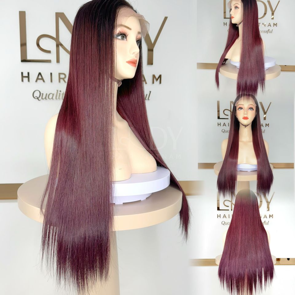 วิกผมตรงทรงกระดูกลูกไม้สีเบอร์กันดีแบบ HD วิกผมมนุษย์จากเวียดนาม