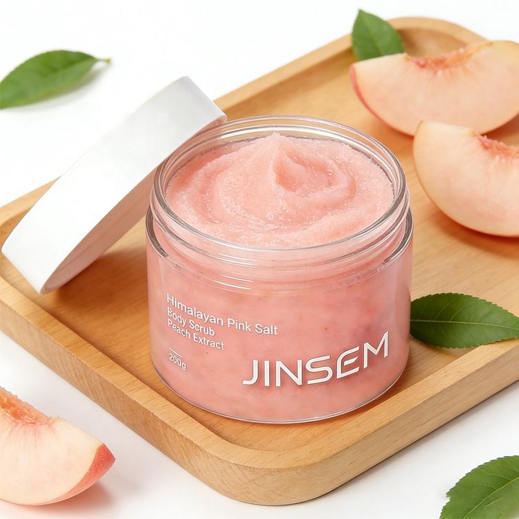 สครับขัดผิวเกลือหิมาลัยสีชมพูผสมเชียบัตเตอร์ ไนอะซินาไมด์ วิตามินอี ช่วยผลัดเซลล์ผิวอย่างล้ำลึก บำรุงผิวชุ่มชื้น 200 กรัม กลิ่นพีช