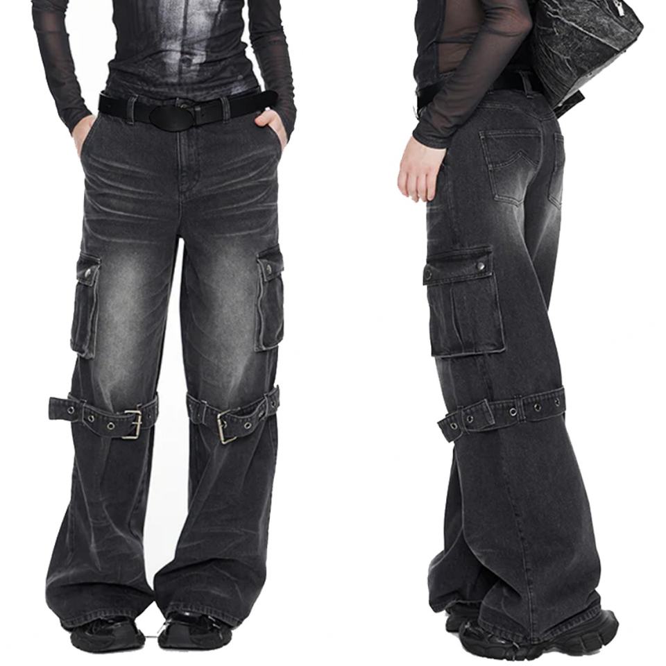 กางเกงคาร์โก้ฮิปฮอปสไตล์วินเทจทรงหลวมสำหรับผู้ชาย หลายกระเป๋า สไตล์ Y2K ขายส่ง