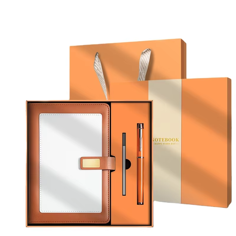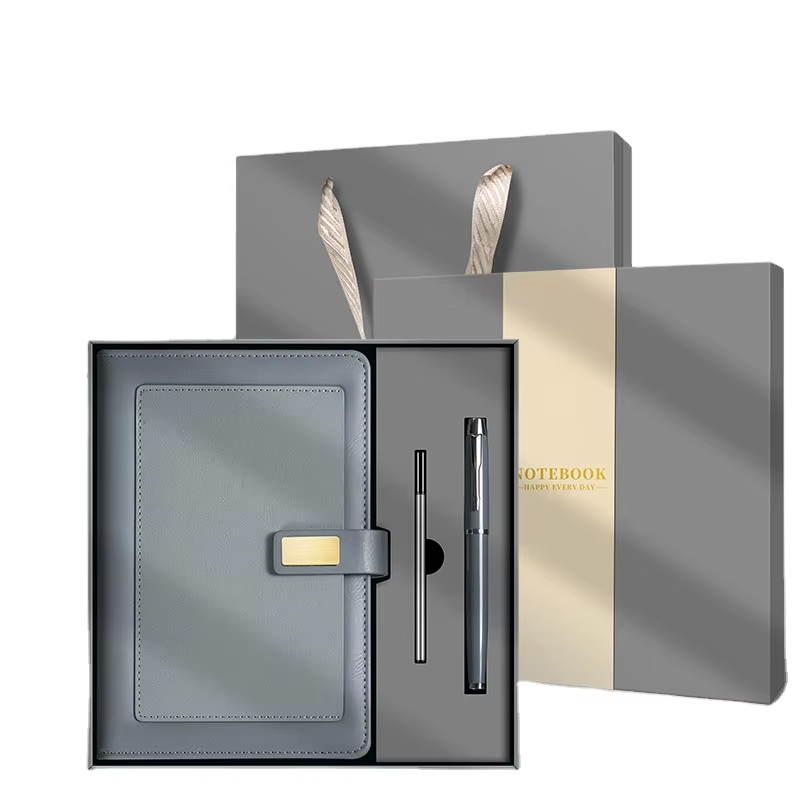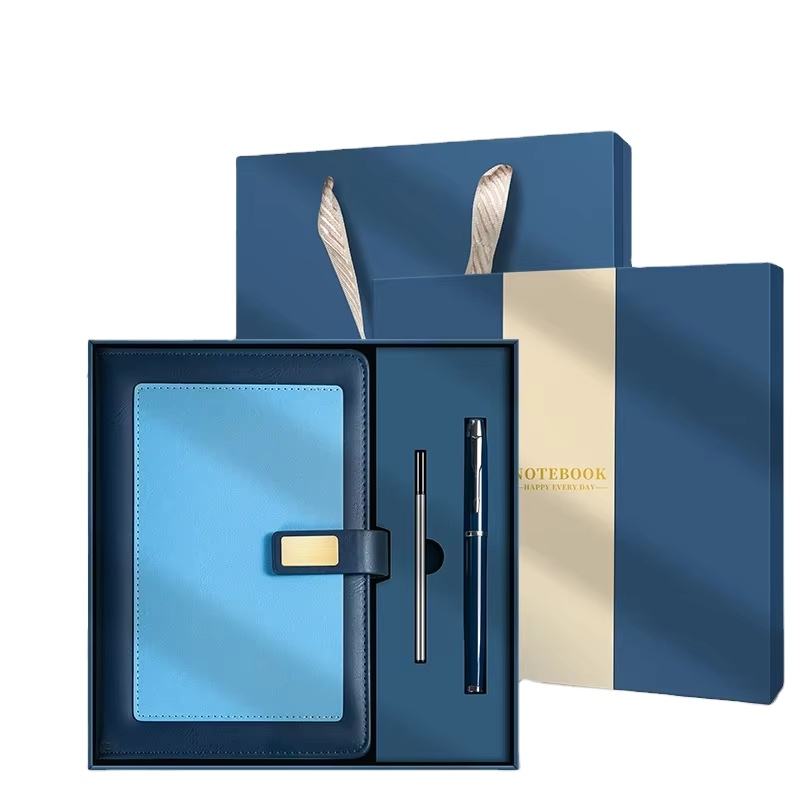 ชุดของขวัญปกหนัง PU พรีเมียมสมุดโน้ตธุรกิจพร้อมกล่องและปากกาออกแบบได้ตามต้องการวันหยุด