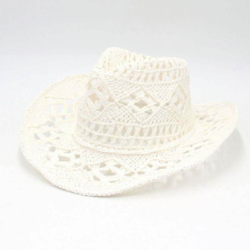 หมวกสานลายฉลุแบบขายส่ง หมวกฟางฤดูร้อน หมวกคาวบอยสำหรับผู้หญิง ป้องกันแสงแดดสำหรับการเดินทาง