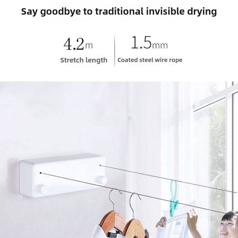 ราวตากผ้าติดผนังแบบยืดหดได้ สายเหล็กคู่ สำหรับใช้ในบ้าน ขายส่ง