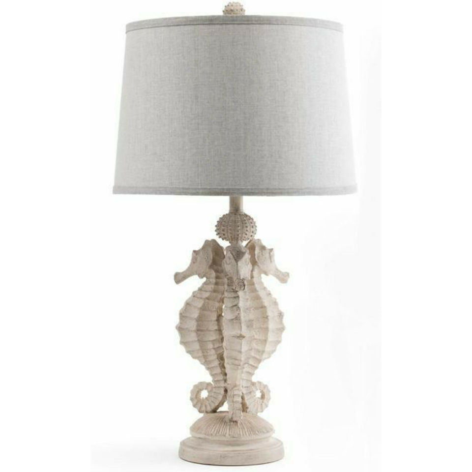 โคมไฟตั้งโต๊ะรูปม้าน้ำเรซิ่นสไตล์วินเทจตกแต่งบ้าน พร้อมโคมผ้าสีข้าวโอ๊ต สำหรับตกแต่งห้องนอน