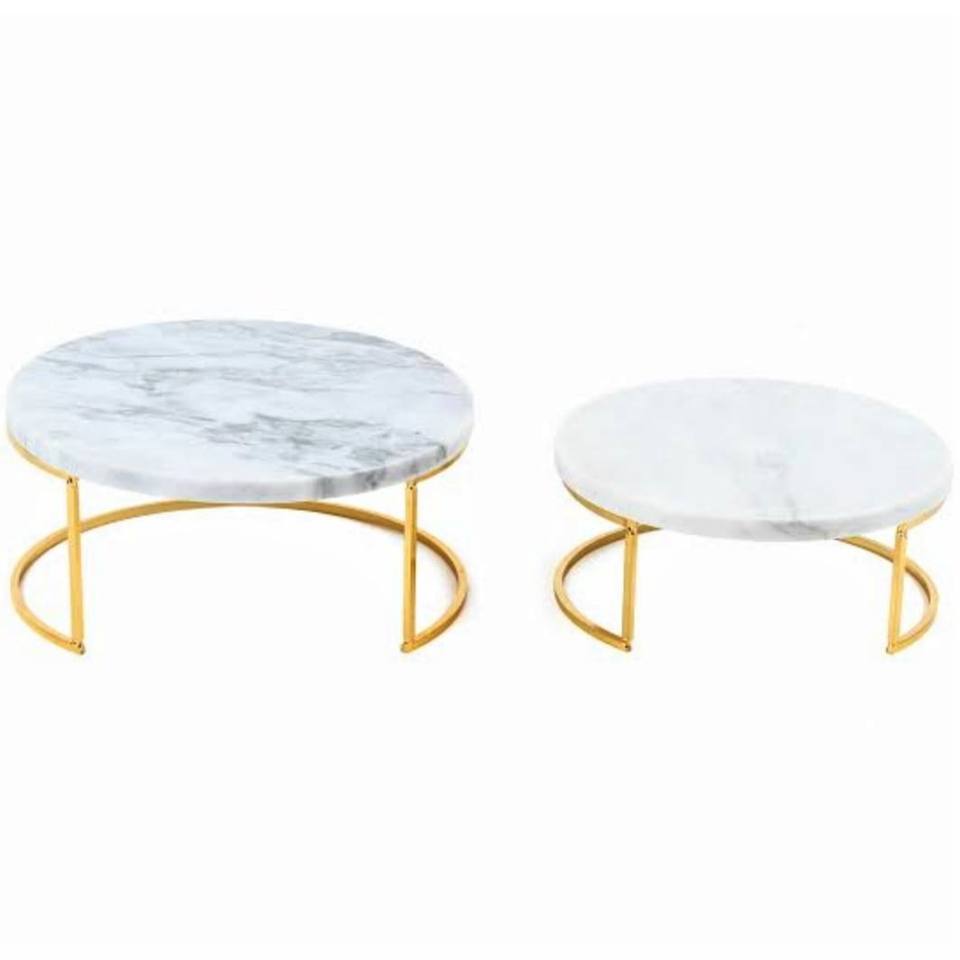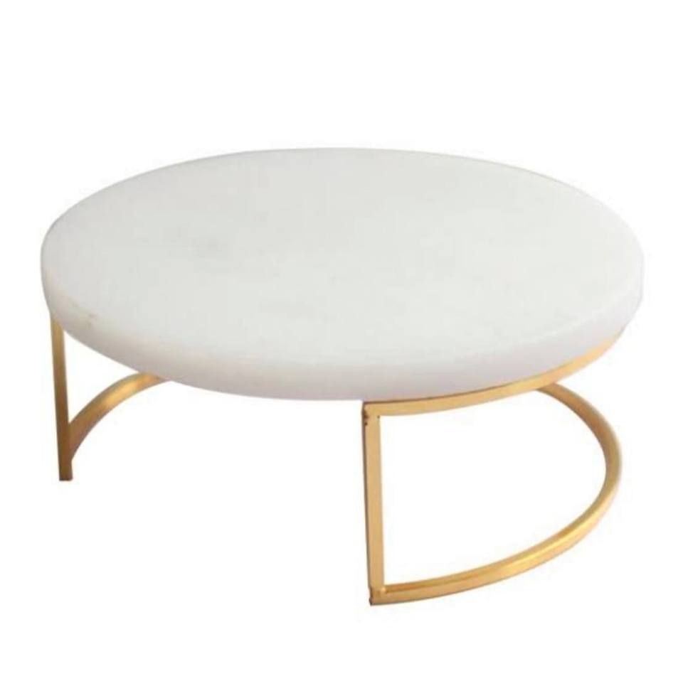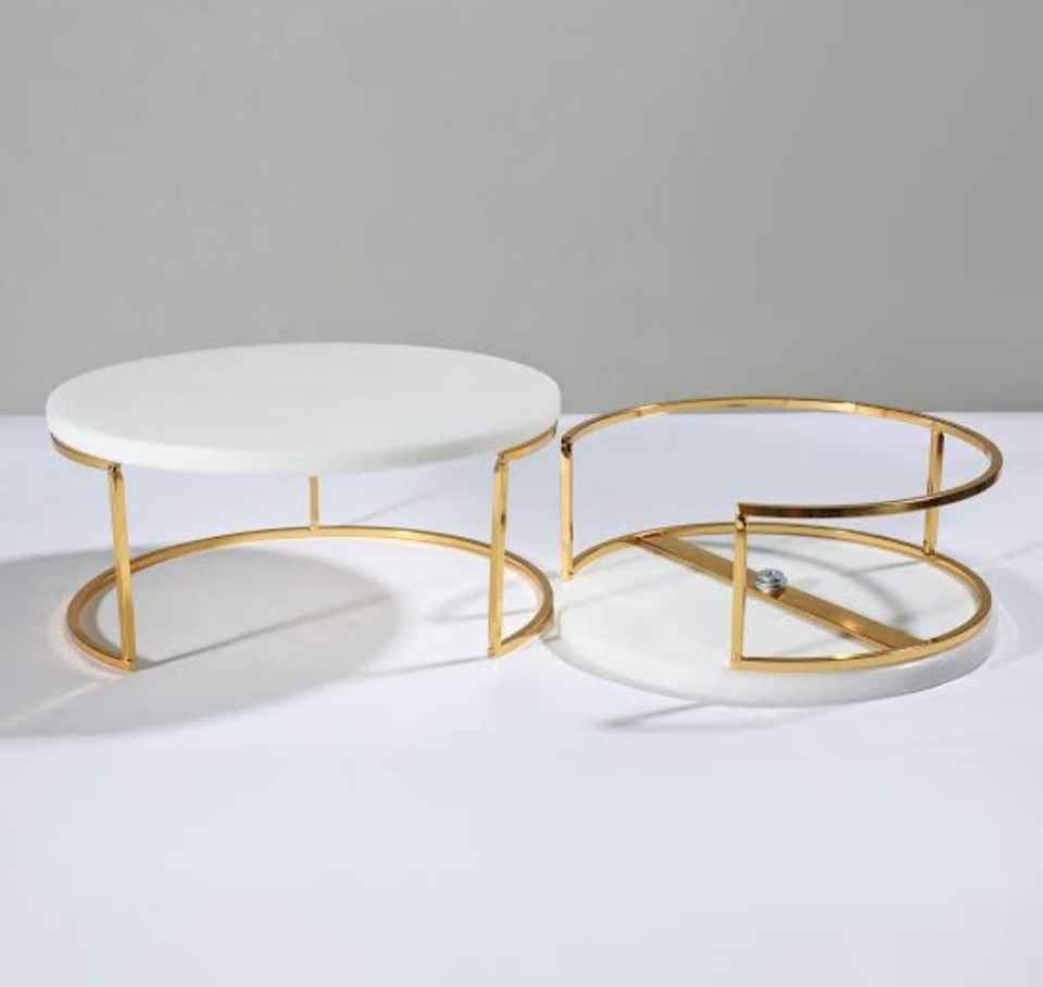 ถาดวางเค้กทรงกลมลายหินอ่อนฐานโลหะสำหรับวางเค้กในห้องครัวในบ้านปรับขนาดได้ตามต้องการ