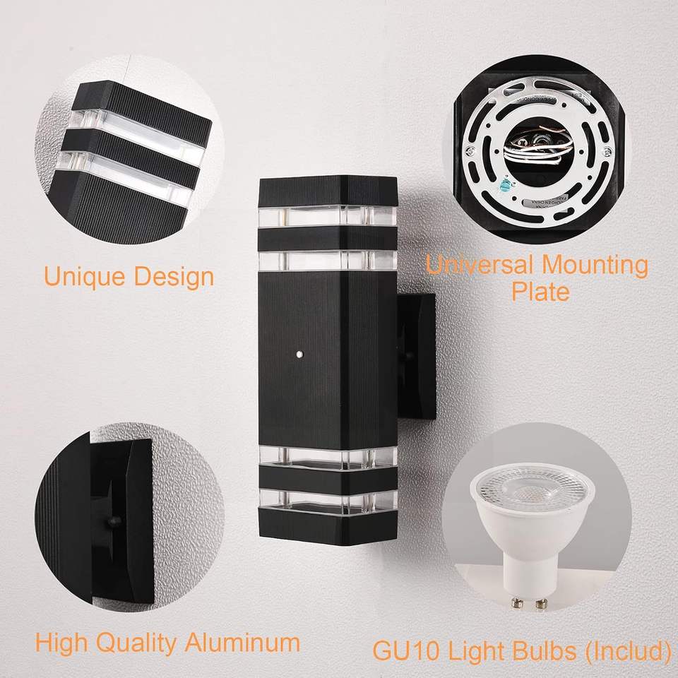 โคมไฟติดผนังภายนอกบ้านแบบกันน้ำ อลูมิเนียม สำหรับระเบียงหรือสวน ไฟ LED สองหัว ส่องขึ้นลง ขายส่ง