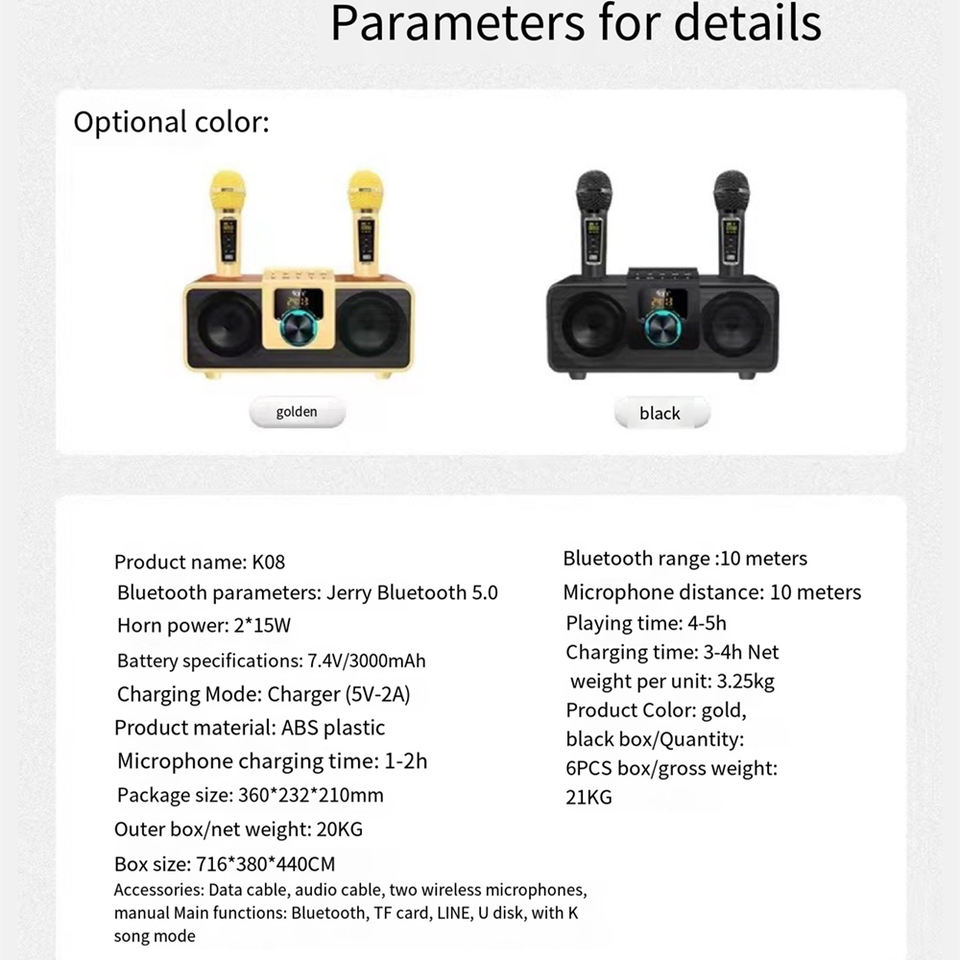 ขายส่งเครื่องคาราโอเกะแบบพกพาสำหรับงานปาร์ตี้ที่บ้าน KTV K8 รุ่น K08 กำลังขับ 30 วัตต์ พร้อมซับวูฟเฟอร์และไมโครโฟนคู่