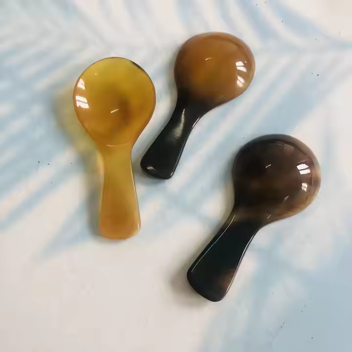 ช้อนฮอร์นวัสดุเป็นมิตรกับสิ่งแวดล้อมช้อนชาบรรจุโลโก้ที่กำหนดเองเครื่องใช้ในอาหารเย็นด้วยงานฝีมือเสี้ยว