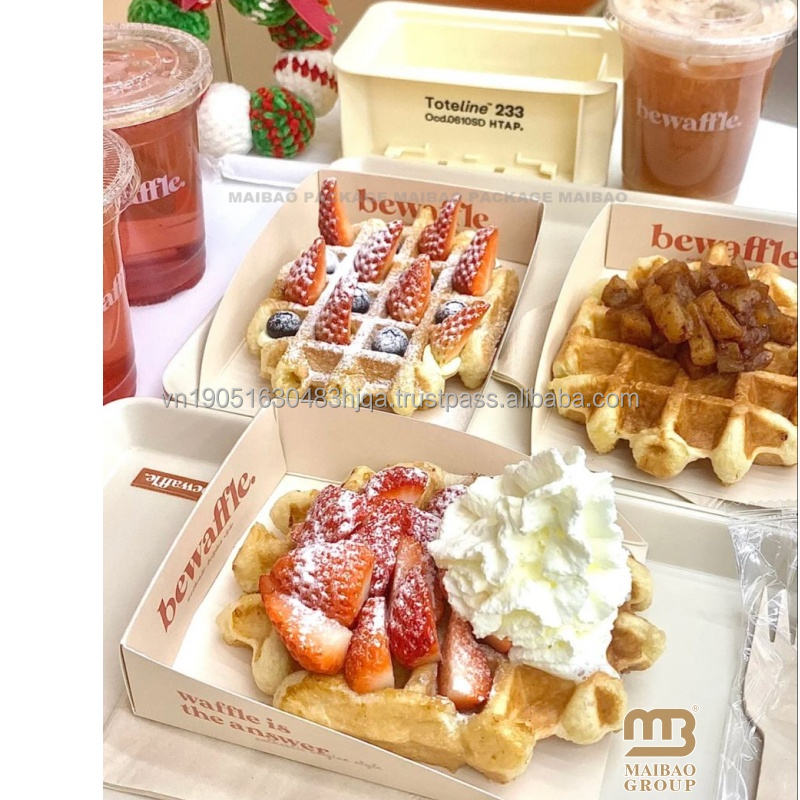 กล่องกระดาษคราฟท์สำหรับใส่อาหารกล่องใส่อาหารจานด่วนสำหรับทำเค้กวาฟเฟิลเฟรนช์ฟรายส์แพนเค้ก
