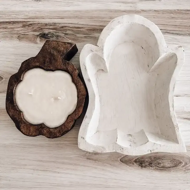 ชามแป้งอะคาเซียผีที่จับกระป๋องสำหรับใส่ของในบ้านวันฮาโลวีนของขวัญไม่เหมือนใครแฮนด์เมดจากเวียดนาม