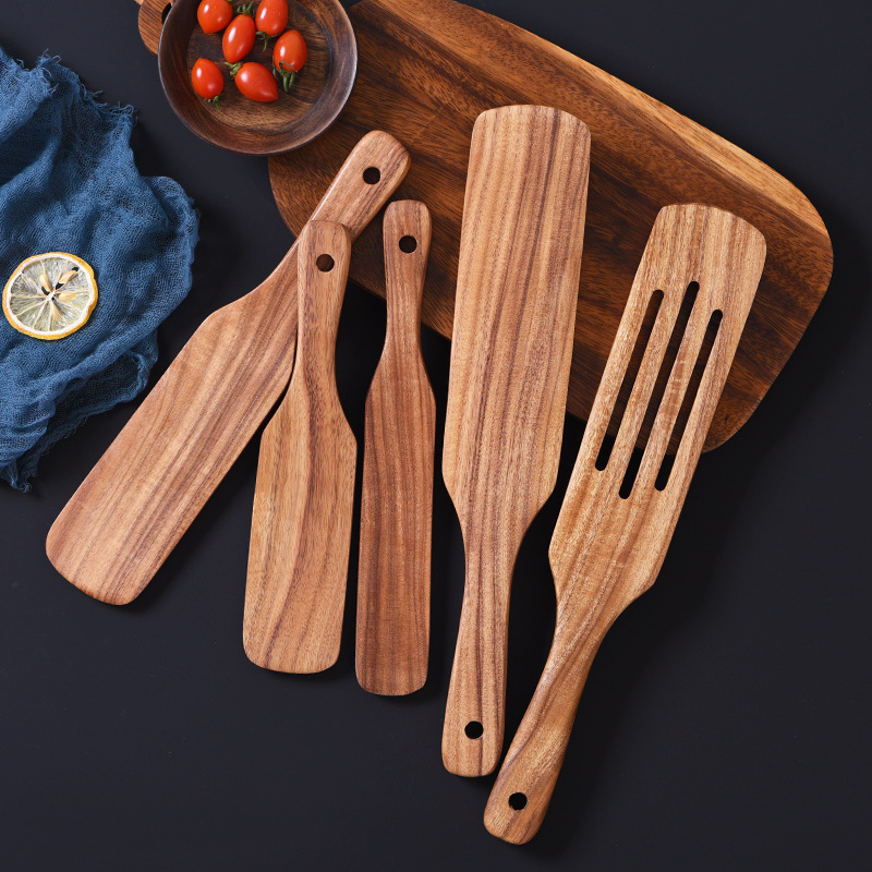 อุปกรณ์ทำอาหารจากไม้5ชิ้นเครื่องครัวทำจากไม้สำหรับผัดสลัด