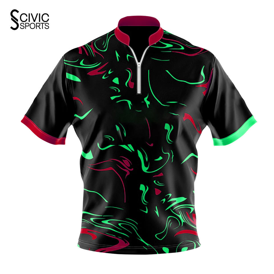 เสื้อโบว์ลิ่งสั่งทำพิเศษ พิมพ์ลายแบบซับลิเมชั่น ผ้าสแปนเด็กซ์/คอตตอน ระบายอากาศได้ดี ทนทาน ไซส์ใหญ่ ขายส่งราคาถูกสำหรับทีม