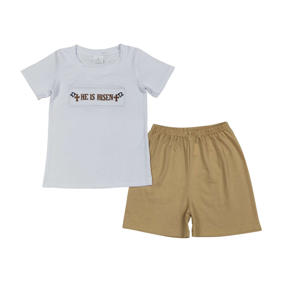 เสื้อยืดแขนสั้นลายพรางลำลองคุณภาพสูงสำหรับเด็กผู้ชาย ขายส่งราคาถูกจาก Trendyism Boutique พร้อมกางเกงขาสั้นผ้ายืด/โพลีเอสเตอร์