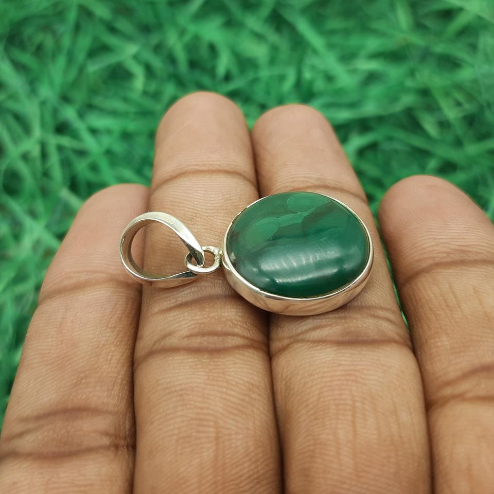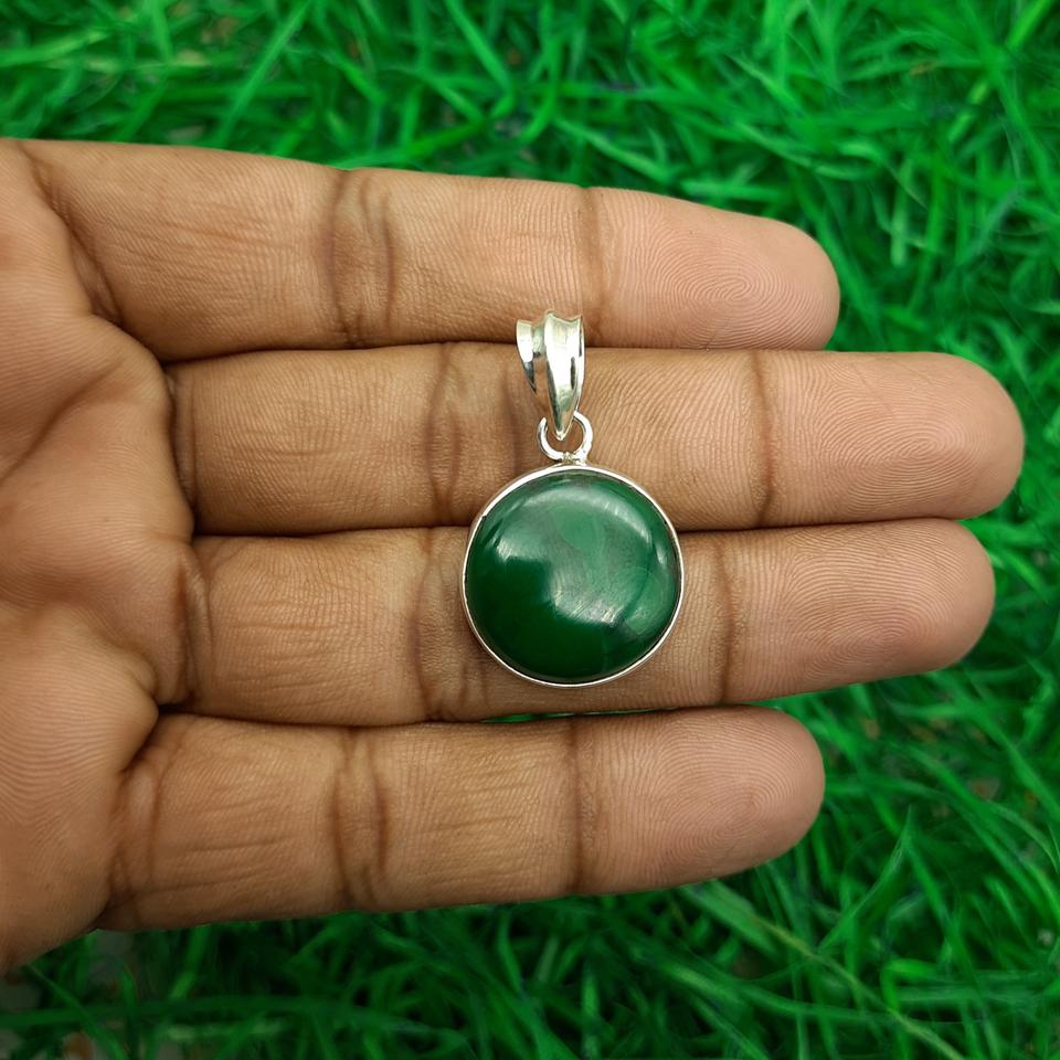 Wholesale Hot Sale Natural Green Malachite Round 925 Sterling Silver Pendant Handcrafted Gemstone Fine Jewelry Pendants & Charms