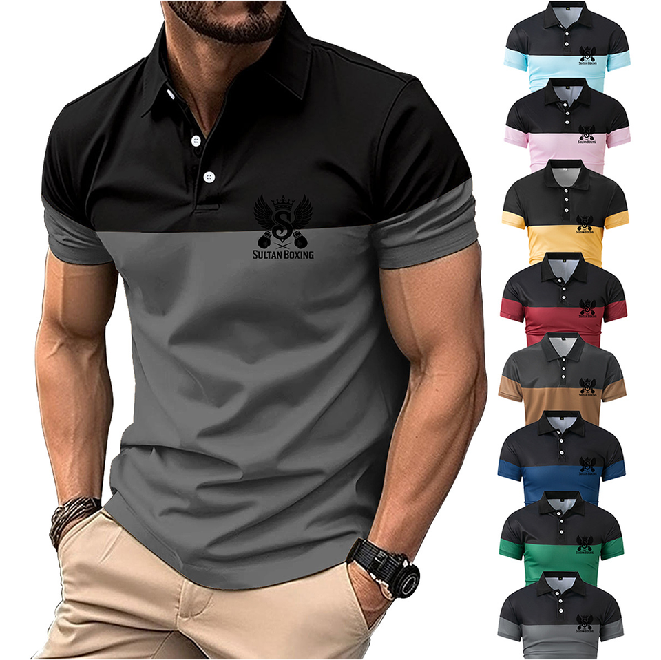 เสื้อโปโลลำลองสำหรับผู้ชายเสื้อยืดติดกระดุมคอวีแนวธุรกิจเสื้อสีเข้ากันกับสี