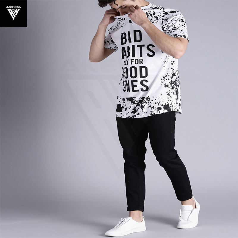 เสื้อยืดผู้ชายผ้าฝ้าย100% พิมพ์ลายปรับแต่งได้ผลิตโดยบริษัท