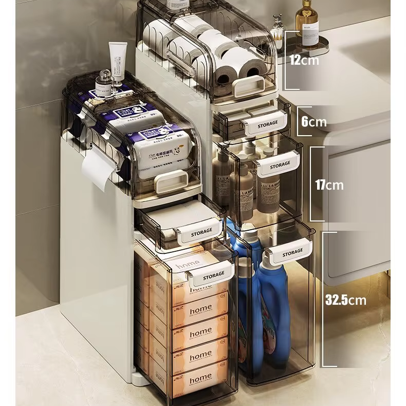 ตู้เก็บของในห้องน้ำแบบพลาสติกกันน้ำทรงเพรียวบาง ขายส่งราคาพิเศษ แบบตั้งพื้น สำหรับจัดระเบียบพื้นที่ขนาดเล็ก