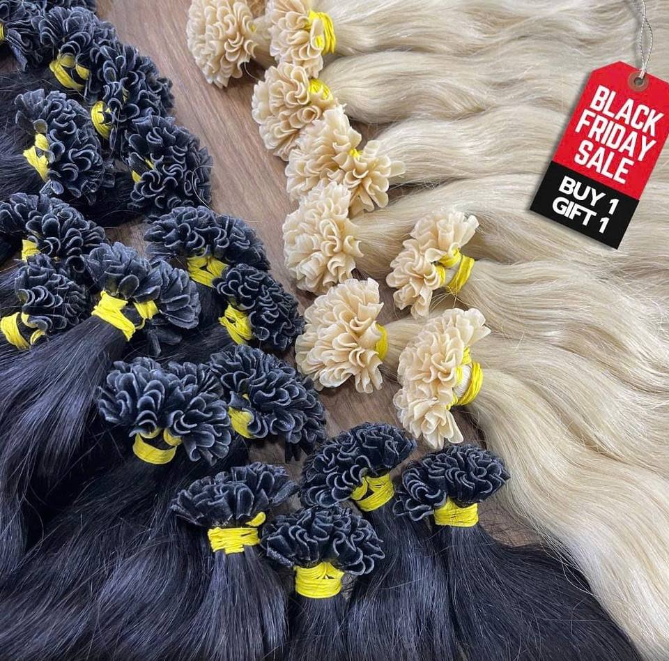 วิกผมมนุษย์เคราตินต่อผมปลายสองชั้น
