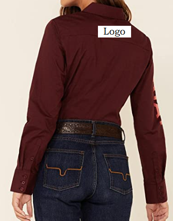 เสื้อแฟชั่นผ้าซาตินสำหรับผู้หญิงเสื้อเชิ้ตลายตารางไซส์ XL มีโลโก้ปักที่คอเสื้อ