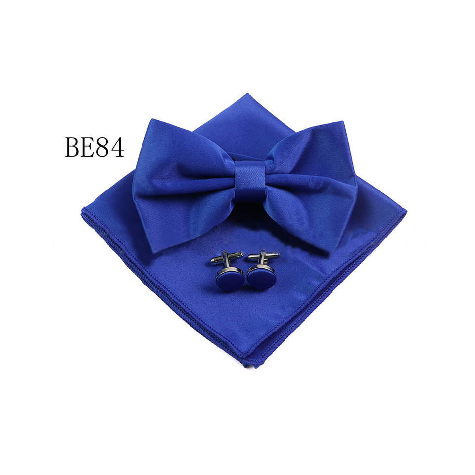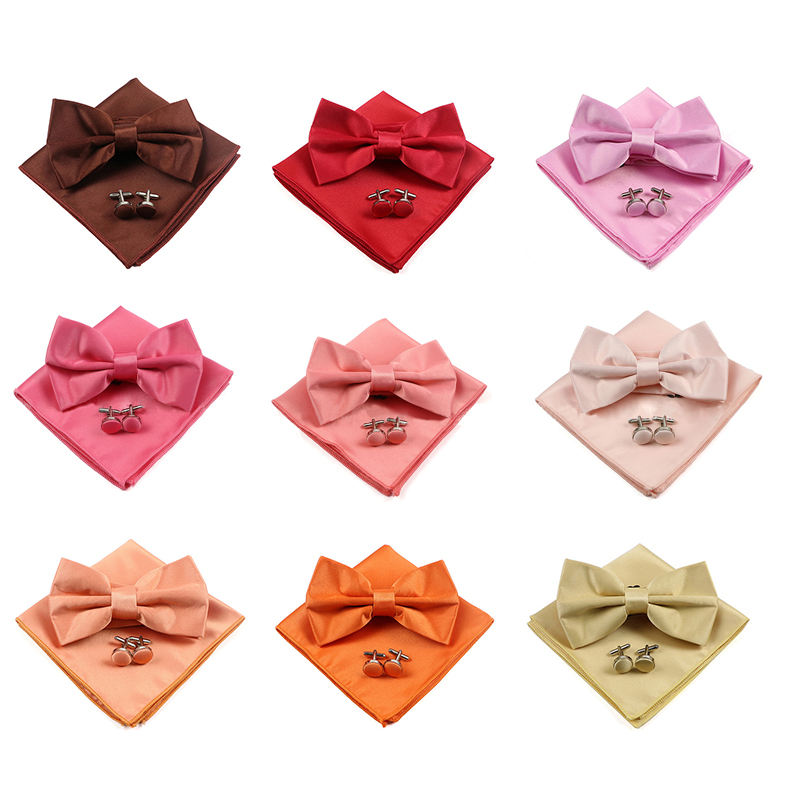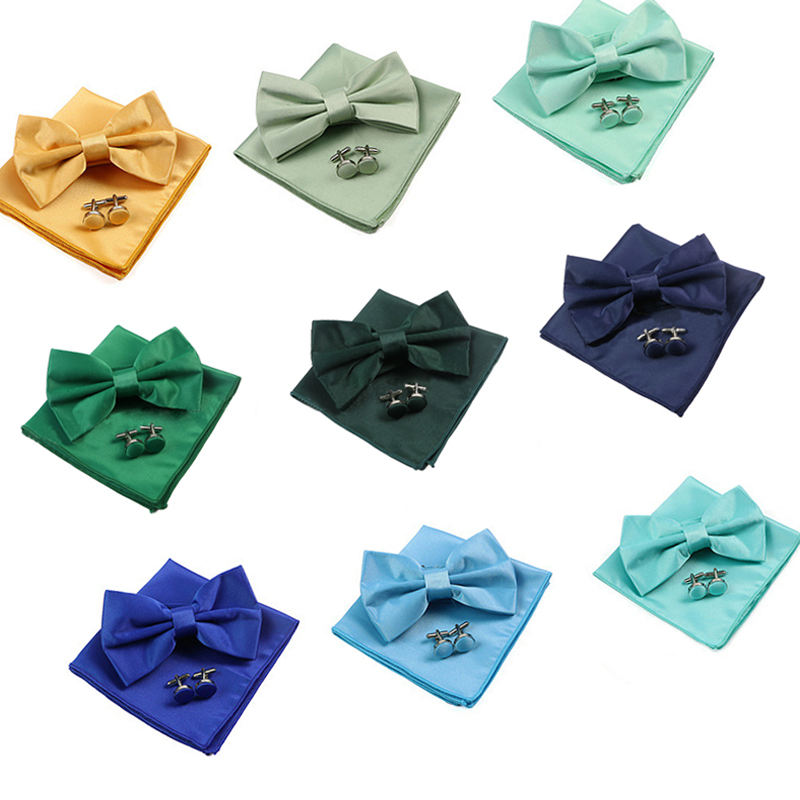 ชุดผ้าเช็ดหน้าหูกระต่ายของผู้ชายชุดกระดุมข้อมือผ้าเช็ดหน้าโพลีเอสเตอร์ผูกโบว์ชุดของขวัญแต่งงาน