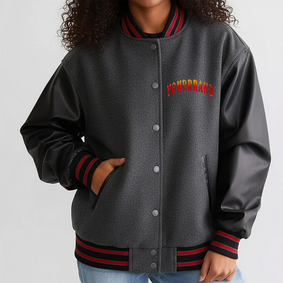 แจ็กเก็ตทีมโรงเรียนแขนหนังขนาดใหญ่พิเศษระบายอากาศได้ดีเสื้อแจ็คเก็ตนักศึกษา