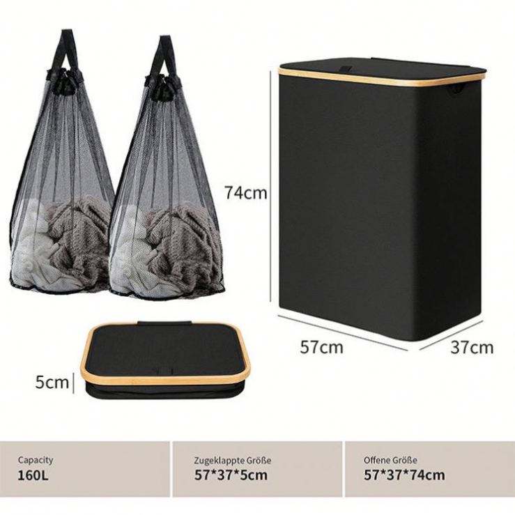 ตะกร้าผ้าแบบพับเก็บได้ตะกร้าซักผ้าไม้ไผ่มีฝาปิด