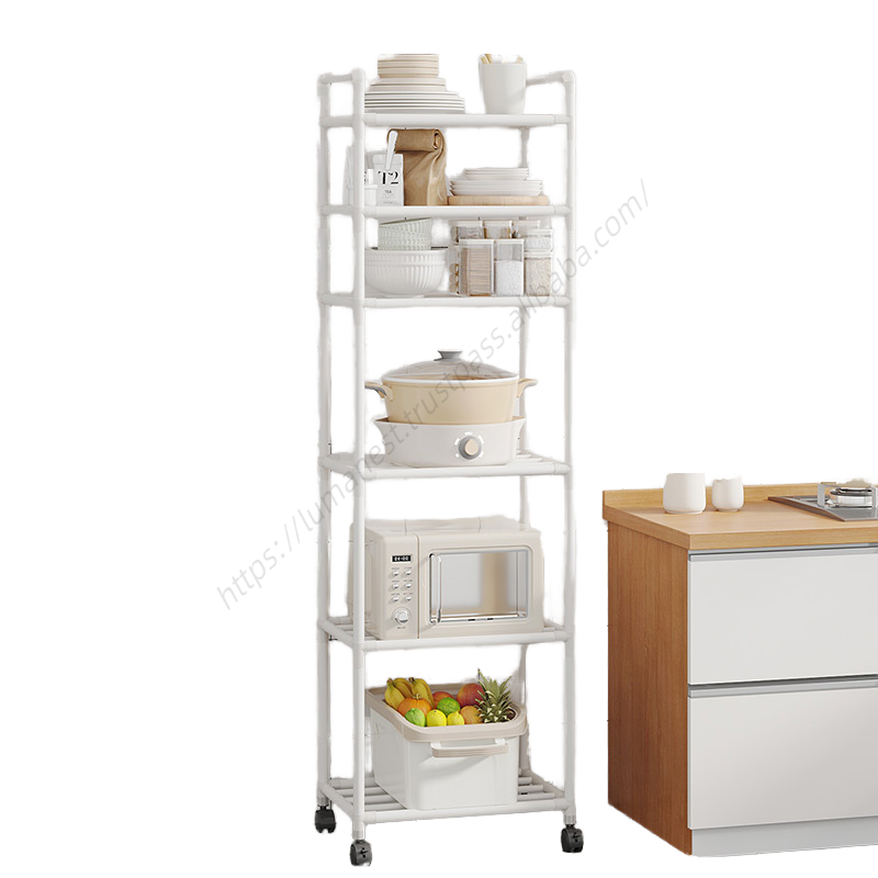 ชั้นวางของในครัวแบบเคลื่อนย้ายได้สำหรับขายส่ง ชั้นวางหม้อแบบตั้งพื้นหรือแขวนเพดาน ชั้นวางไมโครเวฟโลหะ