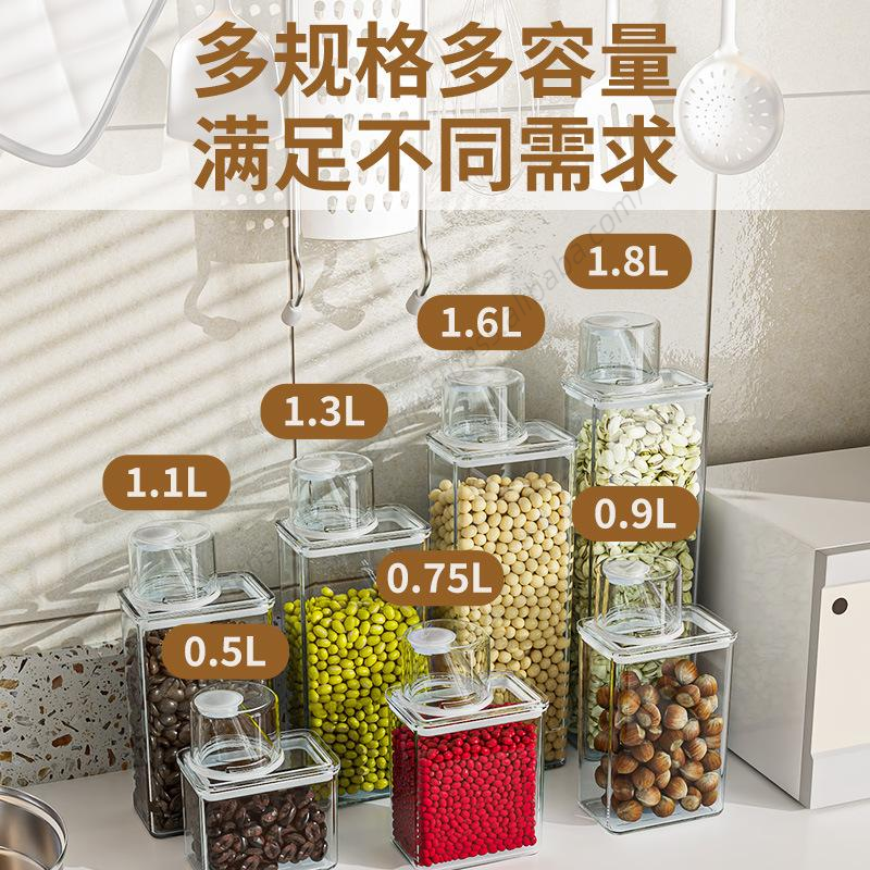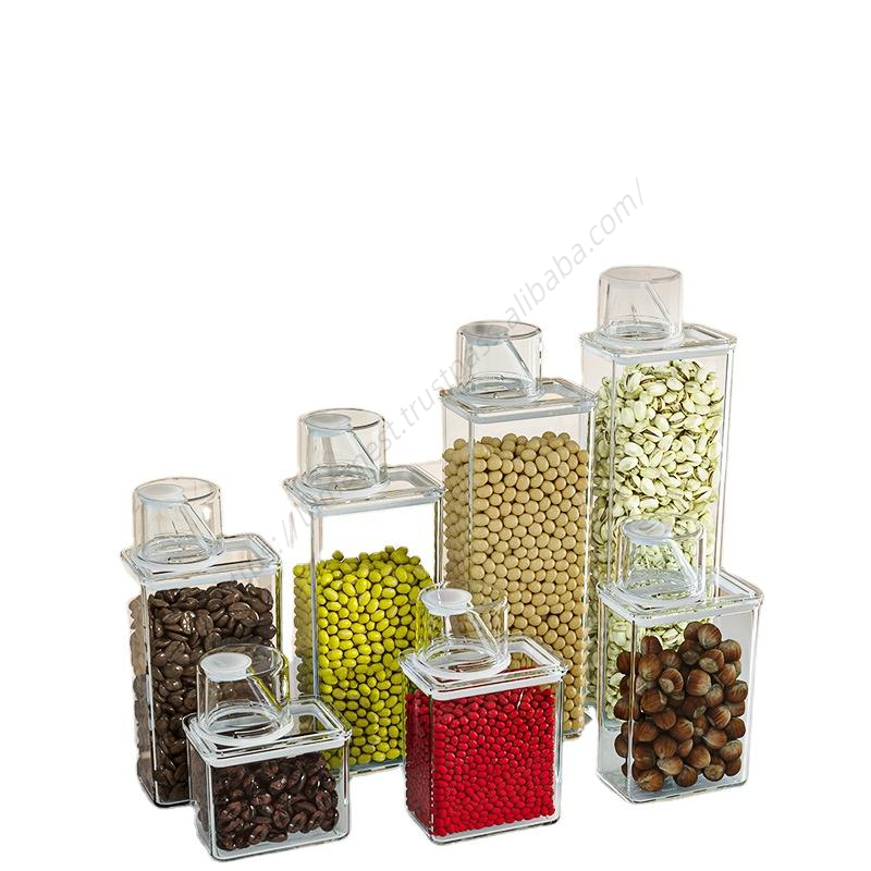 กล่องเก็บอาหารแห้งแบบใส ปิดสนิท สำหรับครัวเรือน ขายส่ง พร้อมถ้วยตวง
