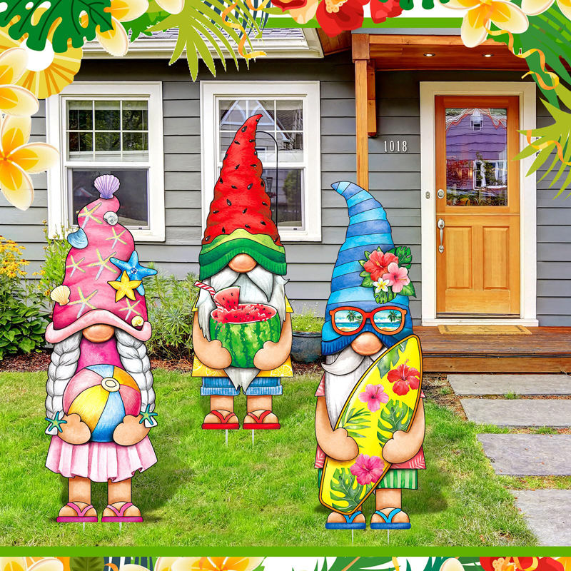 HUABAO เครื่องประดับสวนกลางแจ้ง18X24 H-stakes ตกแต่งลานฤดูร้อนแบบกำหนดเองแตงโมชายหาดป้ายลูกบอลคำพังเพย