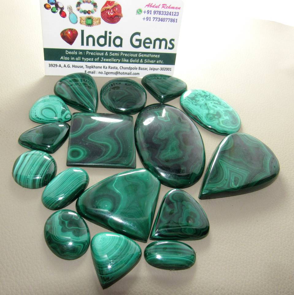 Wholesale INDIA GEMS Malachite Loose Gemstones Smooth Mix Shape Cabochon Jewelry Making Good Quality Natural Per Carat 21-65MM