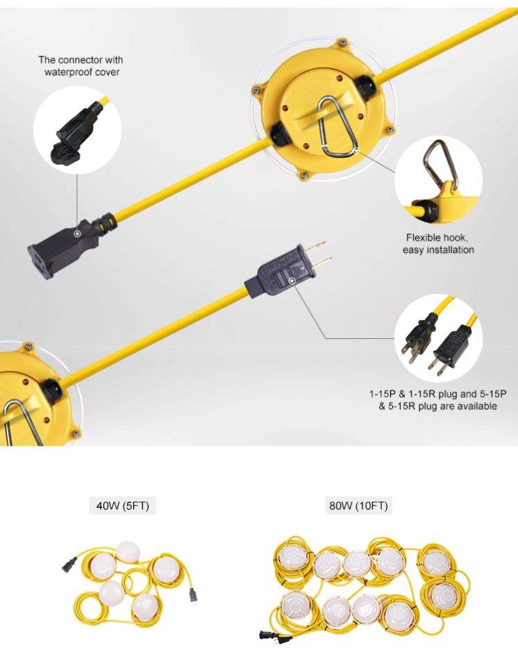 ไฟ LED สำหรับงานก่อสร้างแบบสายยาว ความสว่าง 9000LM ความยาว 50 ฟุต/100 ฟุต ปรับความสว่างได้ ค่า CRI สูง 80 แรงดันไฟฟ้าอเนกประสงค์ มาตรฐาน IP65 สีขาวเย็น ขายส่ง