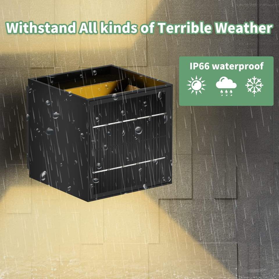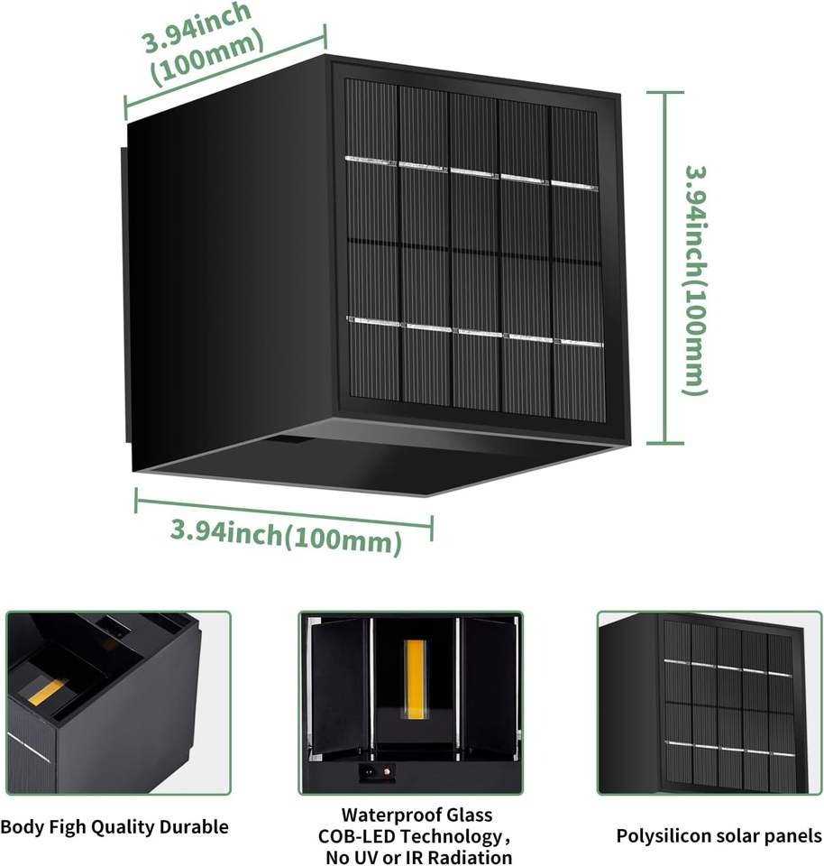 ไฟติดผนังโซลาร์เซลล์กันน้ำ IP65 แบบส่องขึ้นลง 2 สี สำหรับตกแต่งภายนอกบ้าน สวน ลานบ้าน รั้ว