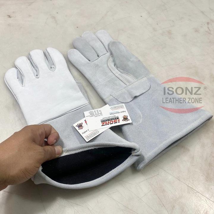 ถุงมือหนังวัว ISONZ ขนาด 14 นิ้ว ป้องกันความร้อน ป้องกันแรงกระแทก สำหรับงานเชื่อม ไม่มีส่วนผสมของซิลิโคน ขายส่ง