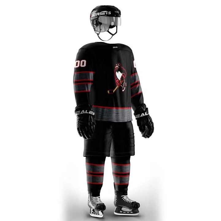 เครื่องแบบฮ็อกกี้น้ำแข็งผ้าระบายอากาศได้ดีแห้งเร็วพร้อมโลโก้ทีมและหมายเลขสำหรับเยาวชน