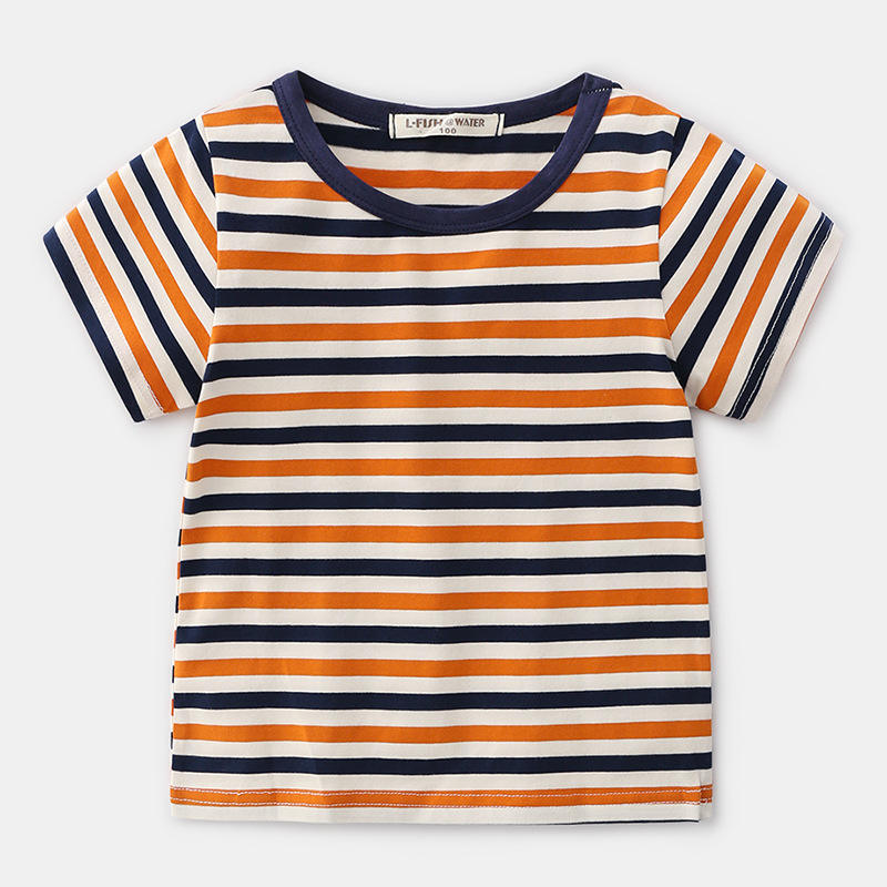 ผู้นำเข้าสินค้าจีนขายส่งในอินเดีย เดลี เสื้อยืดแขนสั้นเด็กผู้ชายลายทาง ผ้าฝ้ายยืด 100%
