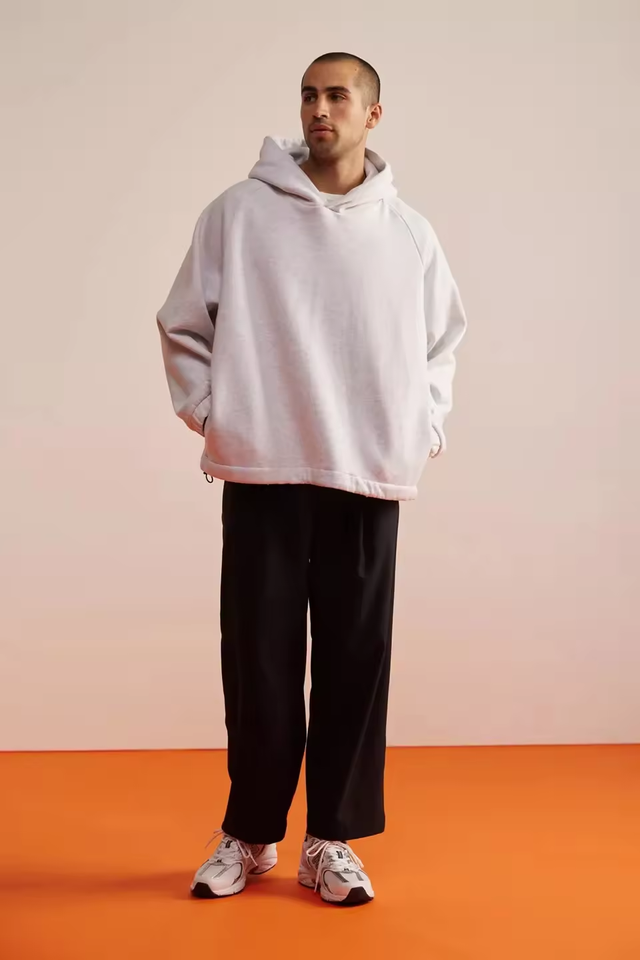 เสื้อมีฮู้ดแขนแร็กแลนสีเทาเสื้อมีฮู้ดกำหนดยี่ห้อของคุณเองผ้าฝ้ายไม่มีเชือกผูกสำหรับทุกเพศ