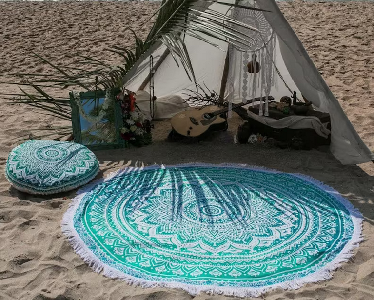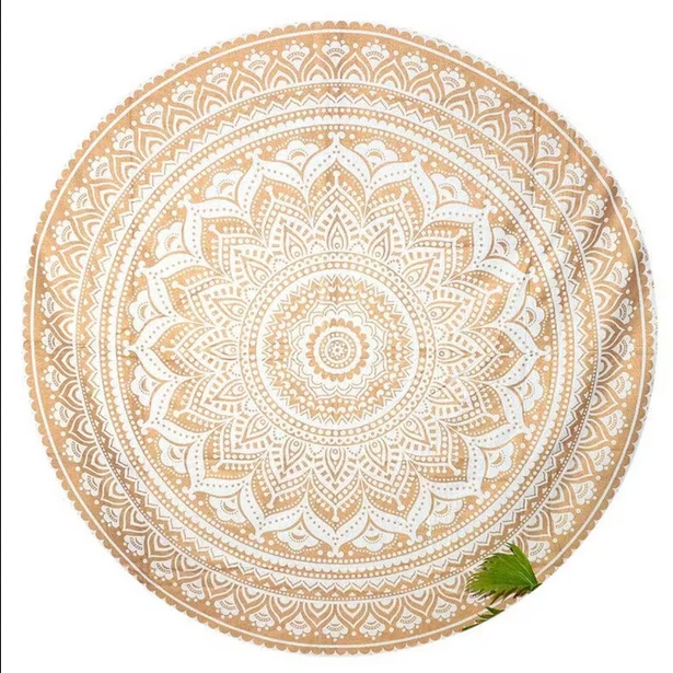 พรมผ้าคอตตอน100% สไตล์อินเดีย,ผ้าแขวนผนังแบบแมนดาลาทรงกลมสำหรับชายหาดประสาทหลอนผ้าแบบโบฮีเมียน