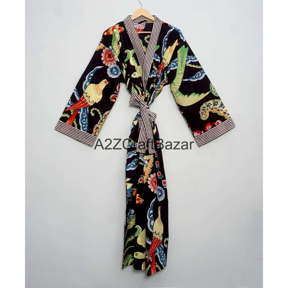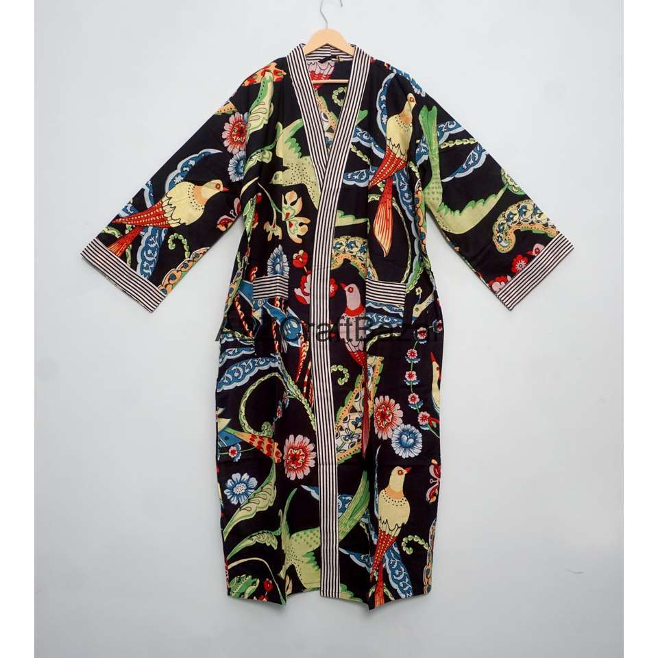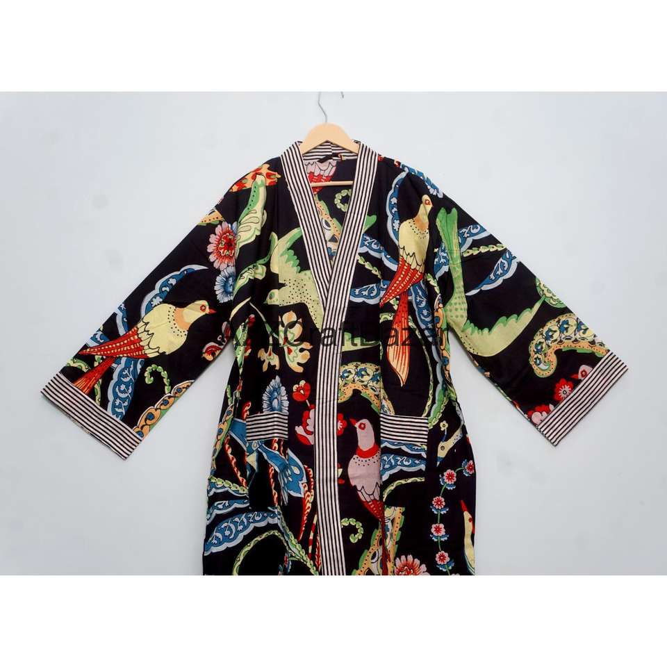ผู้ผลิตเสื้อคลุมกิโมโนผ้าฝ้ายอินเดียแท้ 100% แบบแฮนด์บล็อก สำหรับผู้หญิง ออกแบบโดยดีไซเนอร์ เสื้อคลุมกิโมโนยาว