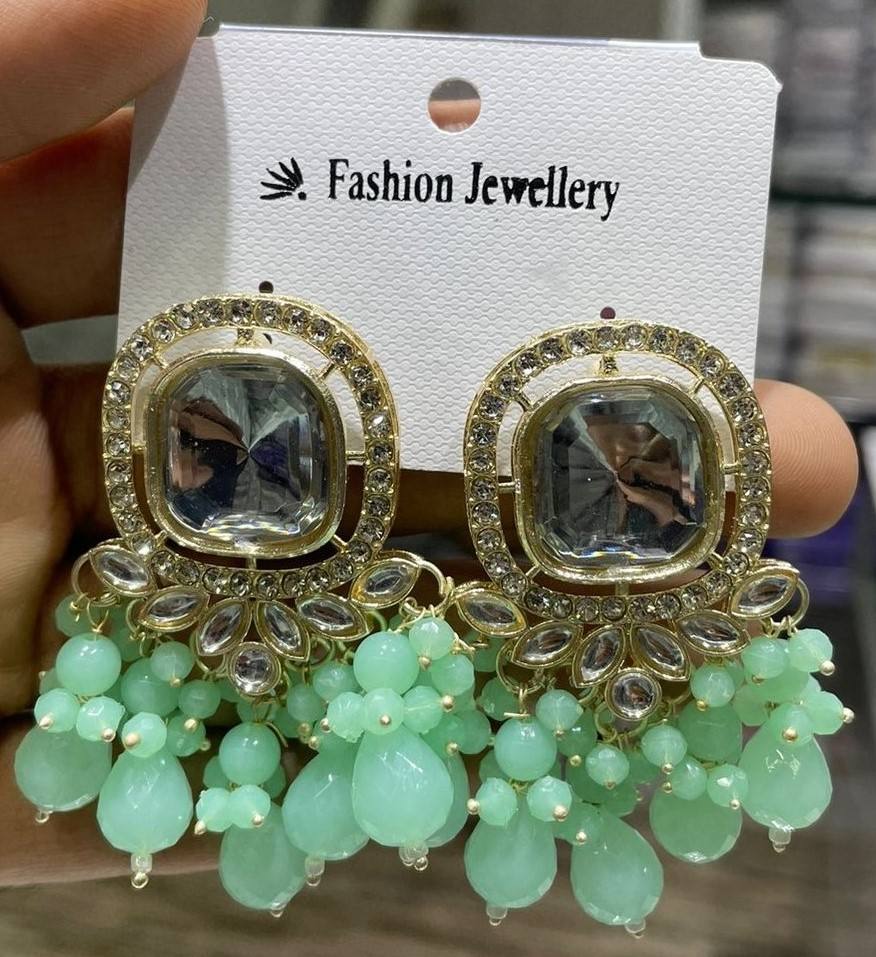 ต่างหูแบบชุดประดับเพชรซิร์คอนสไตล์อินเดียขายส่ง ชุบทอง สีตามสั่ง สำหรับงานปาร์ตี้ งานแต่งงาน และงานเฉลิมฉลองสำหรับผู้หญิง