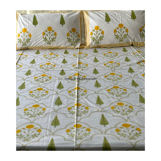 ขายส่งผ้าปูที่นอนแฮนด์เมดอินเดีย sanganeri แฮนด์บล็อคพิมพ์ชุดเครื่องนอนผ้าปูที่นอนพร้อมปลอกหมอน