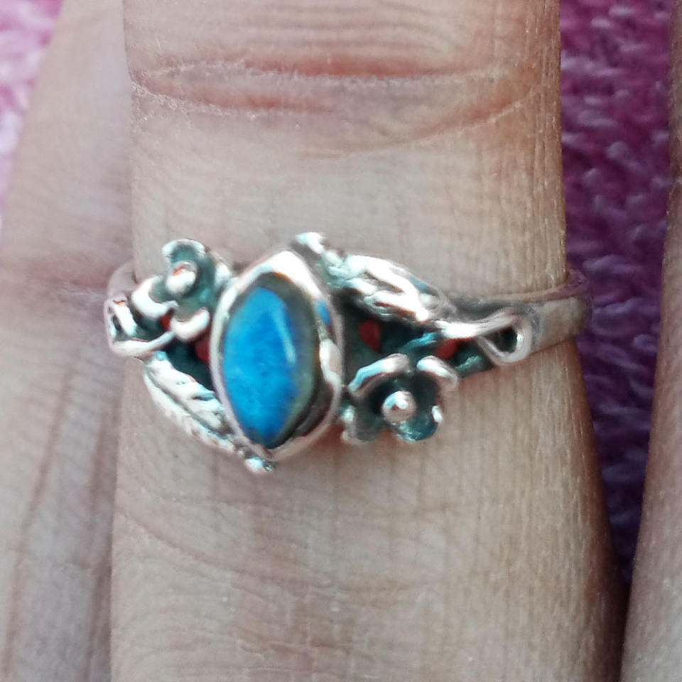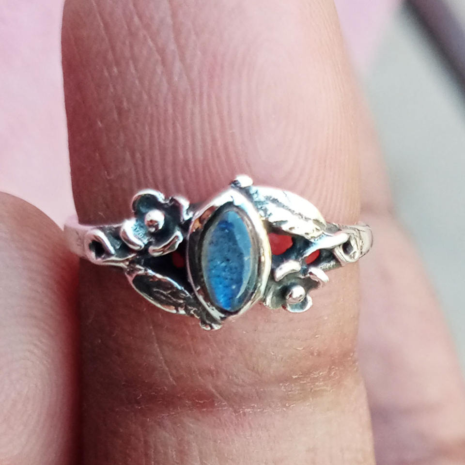 แหวนพลอยลาบราดอไรต์ทำด้วยมือของผู้หญิงและผู้หญิงสำหรับวันเกิดของ925อินเดีย