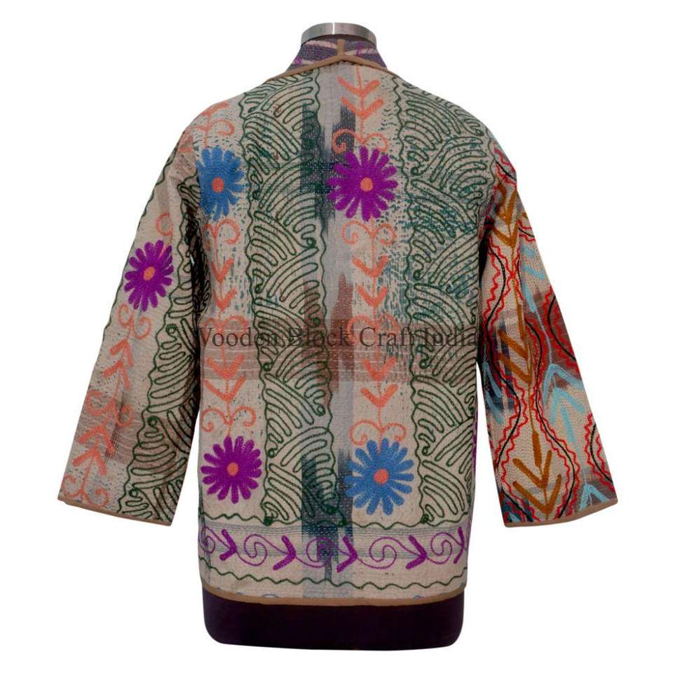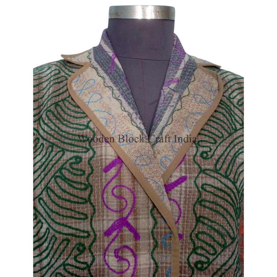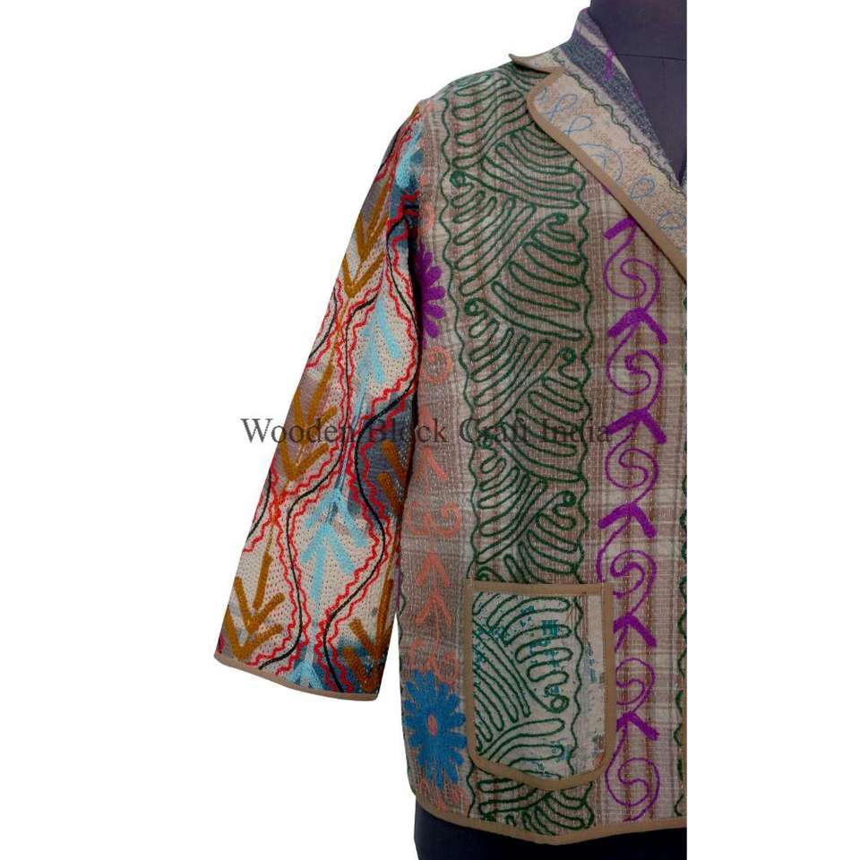 เสื้อแจ็คเก็ตผ้าฝ้ายปักลายคันธาทำมือจากอินเดีย ขายส่ง ลายพิมพ์บล็อก ระบายอากาศได้ดี เป็นมิตรกับสิ่งแวดล้อม เหมาะสำหรับฤดูหนาว ฤดูใบไม้ร่วง และฤดูร้อน