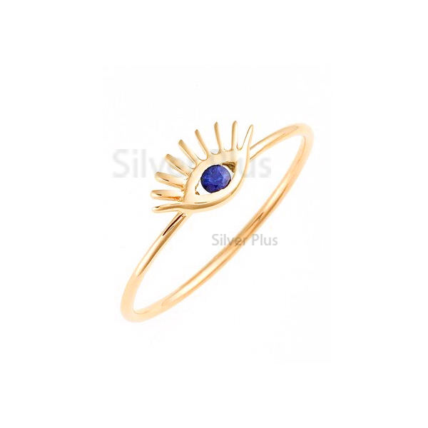 ขายส่งอินเดียเครื่องประดับธรรมชาติสีฟ้าแซฟไฟร์แหวนที่มีสีทึบ14K สีเหลืองทองขนตาสไตล์คลาสสิกสำหรับงานแต่งงานวันครบรอบ
