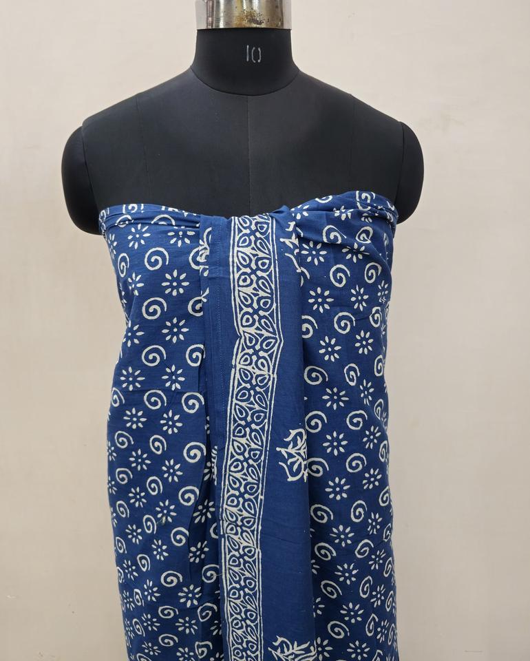 ผ้าพันคอผ้าโสร่งสีน้ำเงินครามสำหรับผู้หญิงทำด้วยมือผ้าฝ้ายชายหาดพิมพ์ลายดอกไม้ซักด้วยมือ-1ชิ้น