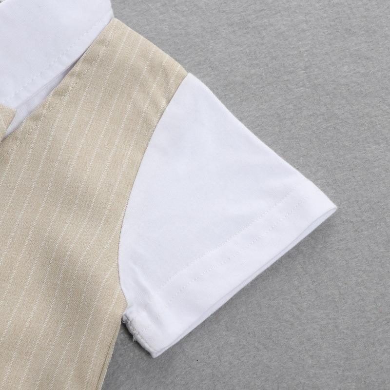 ชุดเสื้อผ้าเด็กผู้ชายฤดูร้อนแบบขายส่ง เสื้อเชิ้ตแขนสั้นสไตล์สุภาพบุรุษพร้อมกางเกงขาสั้นสองชิ้น ชุดเสื้อเชิ้ตผูกโบว์และกางเกงขาสั้นสำหรับเด็ก