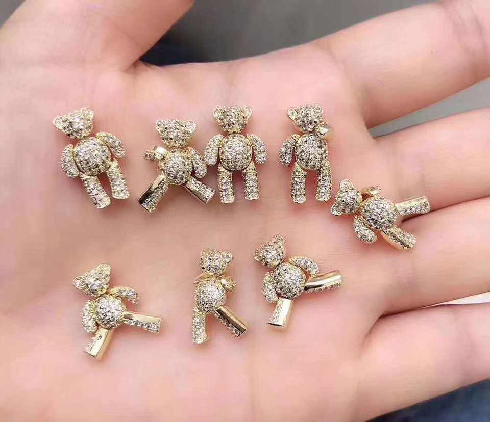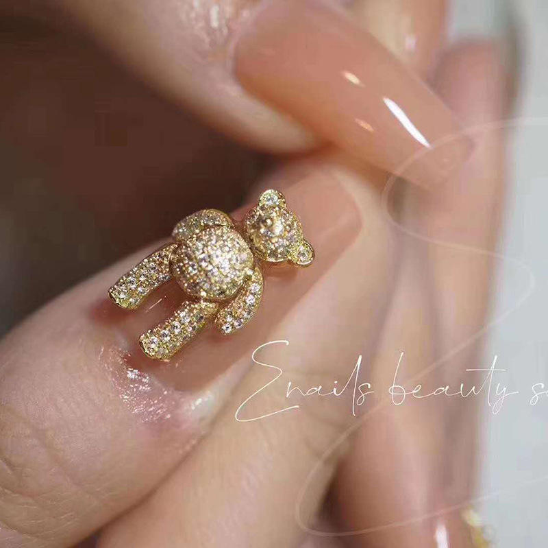 เครื่องเพ้นท์เล็บ360แบบหมุนได้ทำจากโลหะผสมเพทายรูปหมีน่ารักได้รับความนิยมใช้ตกแต่งสปาเล็บ