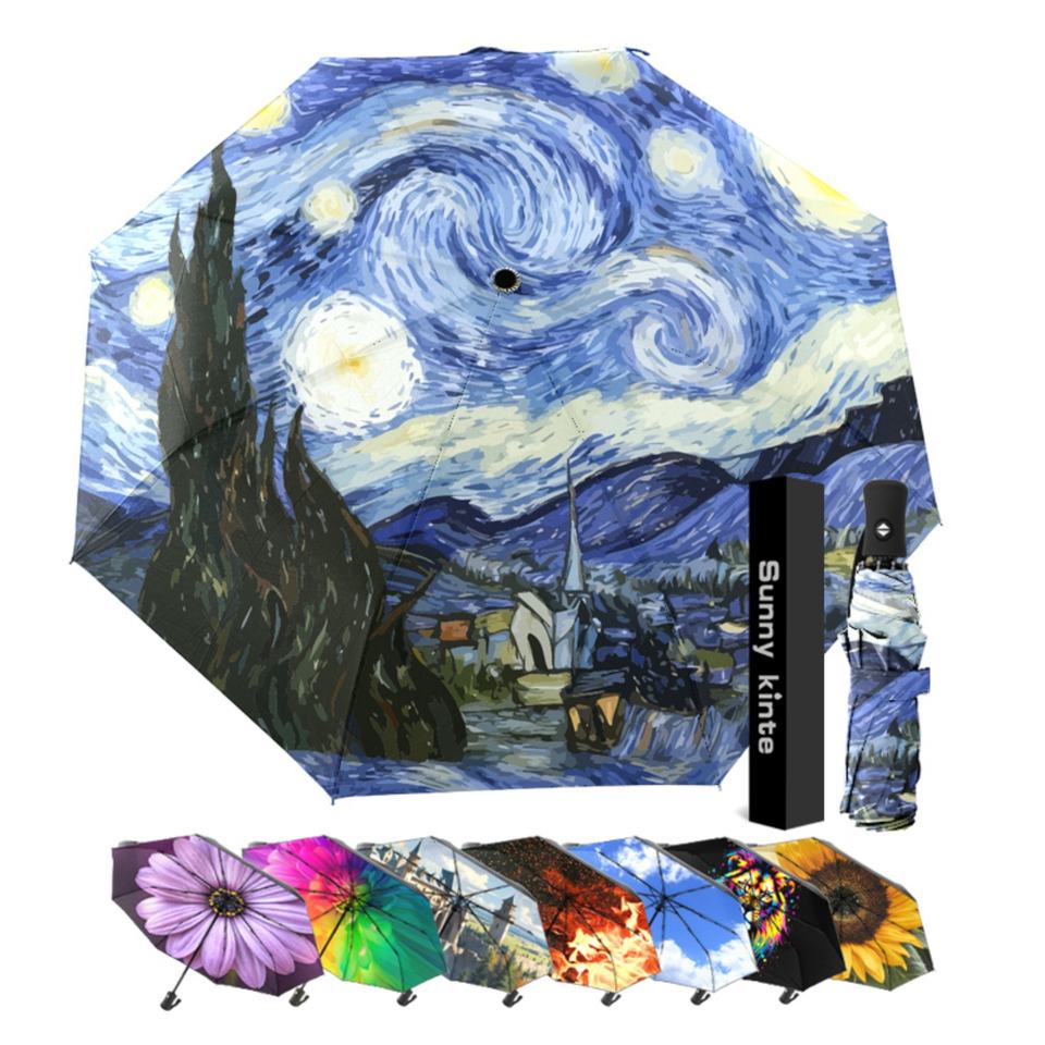 ร่มกันลมพับกลับอัตโนมัติเต็มรูปแบบ โครงเหล็ก ไฟเบอร์กลาส 8 ซี่ ผ้า Pongee ป้องกันรังสียูวี ควบคุมการพับด้วยมือ